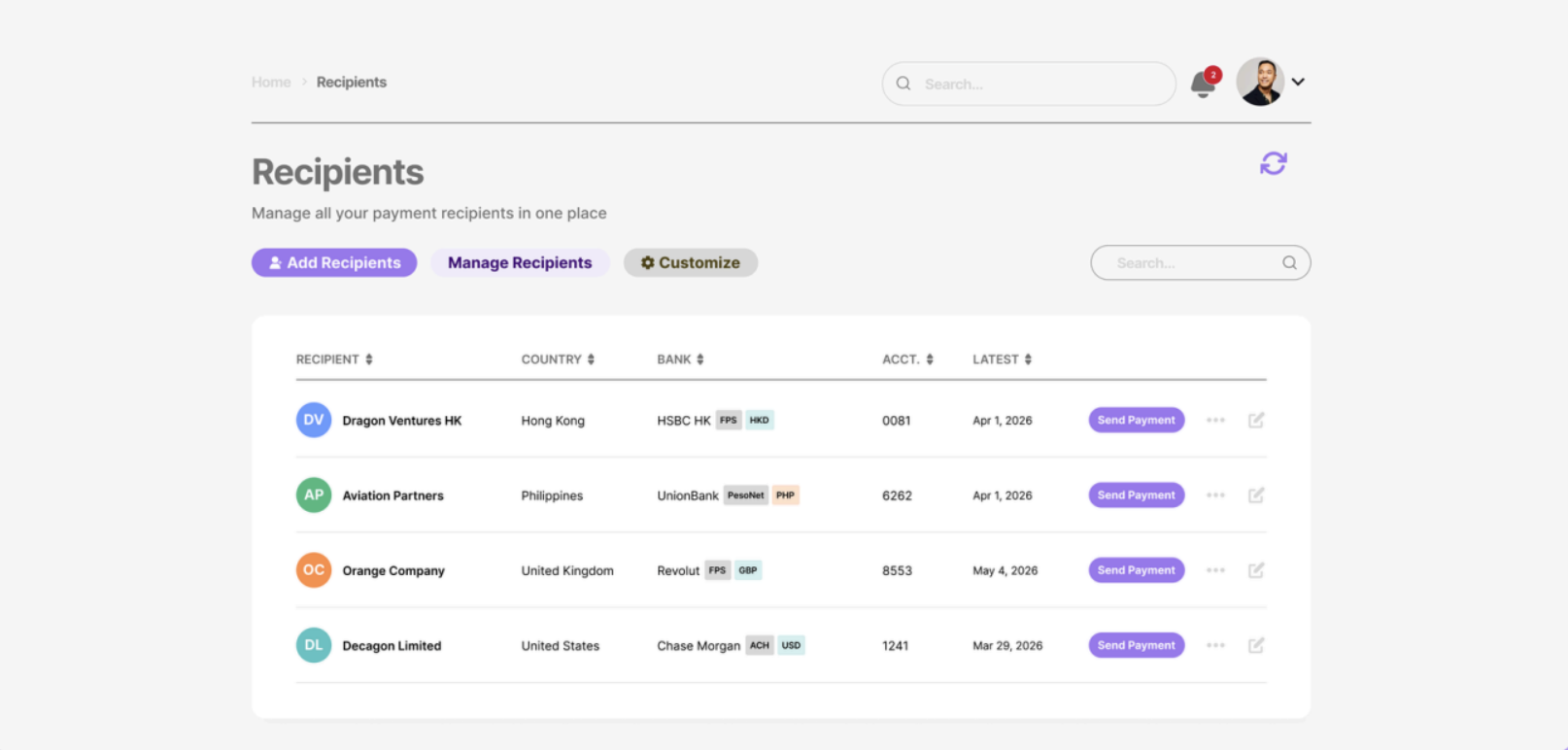 Send cross-border payments with transparent pricing, real-time visibility, and fewer manual steps.