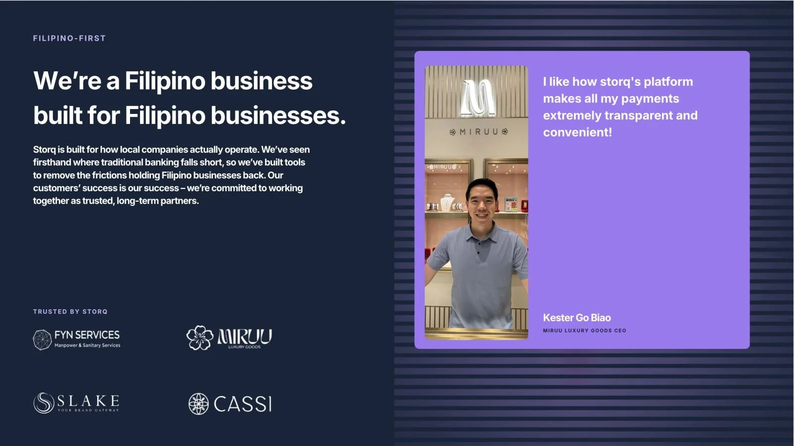 Unlike global platforms built for retail users, Storq is built specifically for Philippine businesses. We offer local support, SME-focused features like maker-checker approval workflows, and partnerships with regulated Philippine fintech companies you already trust.